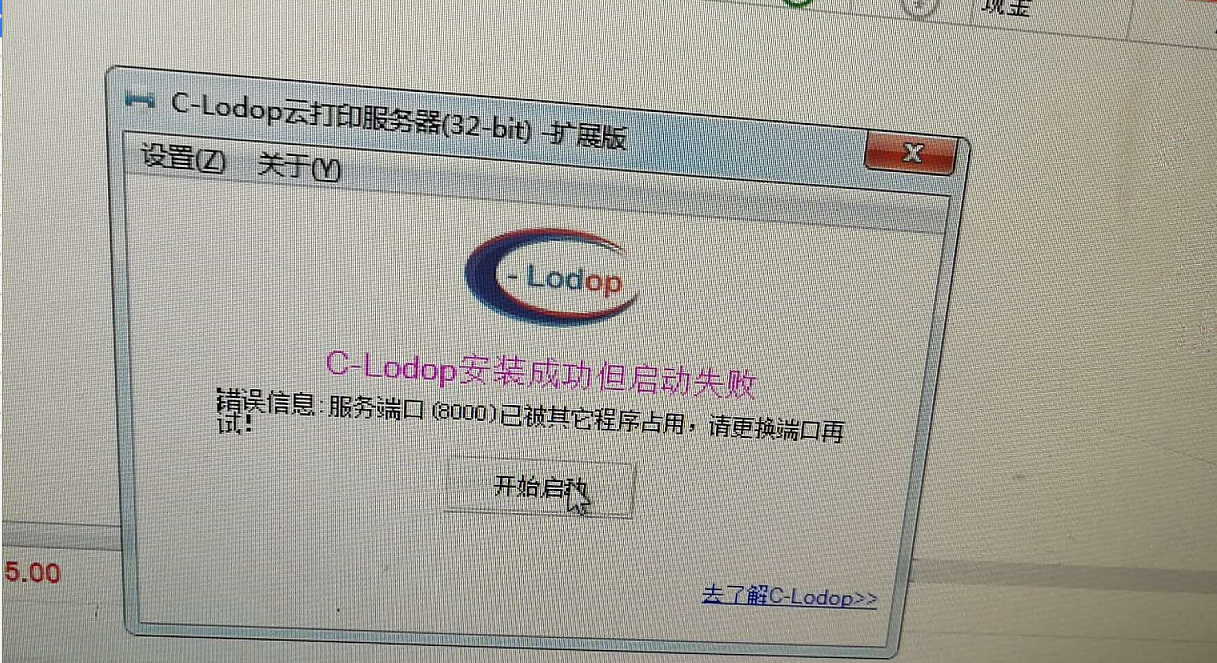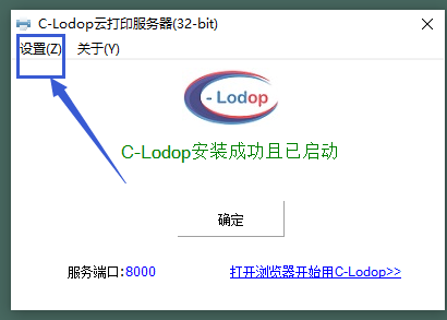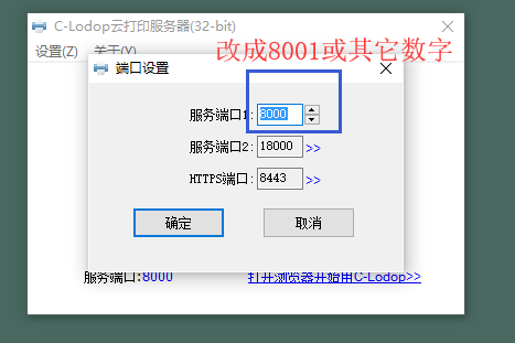 解决方法:改一下C-Lodop的服务器端口就可以,比如改成8001,只要不和其它程序冲突就行,步骤如下 步骤一:在C-Lodop启动界面,点“设置”按钮,在弹出的下拉选项中选择“端口设置”