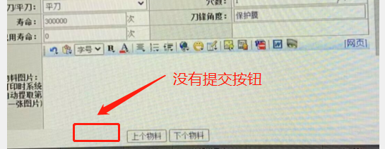 :物料编辑刀模编辑,没有提交按钮?
