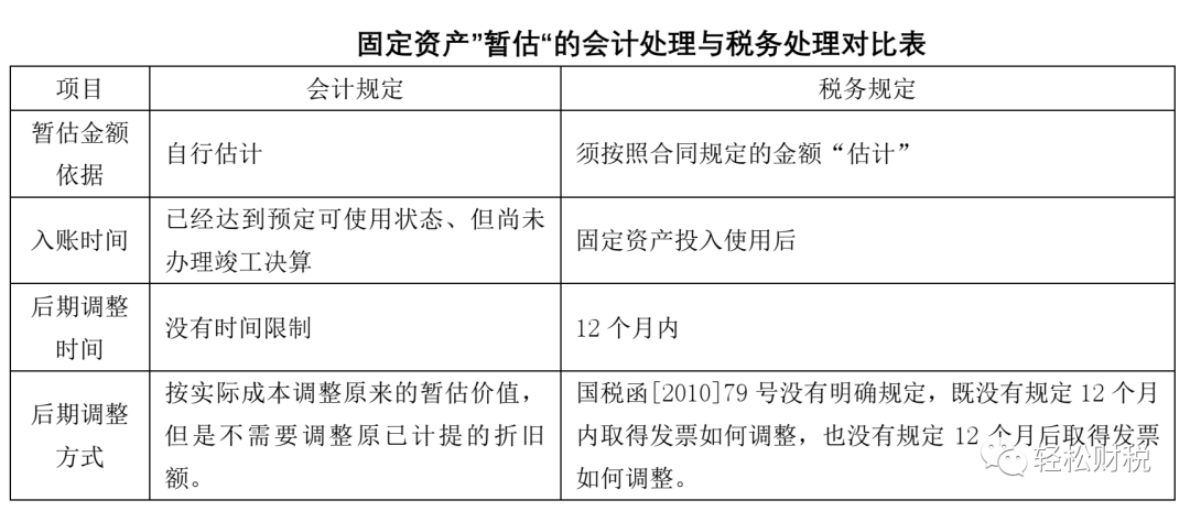 暂估的成本一直没有发票来怎么办?解答: 会计核算,需要遵循“权责发生制原则”“真实性原则”“谨慎性原则”“配比原则”等。 因此,对于企业实际已经发生的经济业务,不管是否收到交易对应的发票,会计核算均应该予以记录与反映,这是“权责发生制原则”和“真实性原则”的要求。 同样,对于“三包费用”、极可能发生的损失、资产减资迹象等,会计核算基于“配比原则”“谨慎性原则”,就需要先暂估计提“三包费用”“或有负债”“资产减值准备”等。 上述原因,就是产生会计核算的“暂估”原因。 一、存货涉及到暂估 企业的存货包括外购和自制等,都有可能涉及到暂估。 (一)外购存货的暂估 此类暂估,是最典型的暂估,也是会计教科书上重点介绍的“暂估”。 外购存货的暂估入账,会计分录不难。 外购存货的暂估入账后,后续被生产领用、销售出库等,跟正式的外购入库一样,无论是生产成本的结转,或者是销售成本的结转,都是不受影响的。 在企业所得税方面,季度预缴时,按照会计核算的数据直接申报(即按暂估数申报),不需要做纳税调整;在汇算清缴时,只要在次年5月31日前收到发票的,就可以税前扣除,否则就需要做纳税调增。在汇算清算结束后才收到发票的,只要在5年内,就可以申请追补扣除。 外购存货需要,以下情况的可以不需要销货方开具发票: 1.货物销售方是个人的,交易金额满足“小额零星”标准的(即500元以下); 2.从境外购入的; 3.从农户个人采购的自产自销农产品。 (二)自制存货的暂估 自制存货的成本,涉及到原材料耗用、燃料动力、人工费用等,这里面都有可能涉及到暂估的问题。比如,外购原材料的暂估、外购燃料煤的暂估、人工费用等。 在自制存货涉及到的暂估中,外购部分的暂估,跟外购存货暂估一样,一旦生产领用后按照暂估的成本做产品结转,后期不再调整。对于外购部分的发票,需要发票进行税前扣除的同样要求在次年5月31日前取得,否则就需要纳税调增;后期取得再追补扣除。 自制存货的人工费用,在没有实际发放的情况计提工资等,实际上也是一种暂估。自制存货中包括的工资等,季度预缴企业所得税时,按照会计核算数据申报扣除,不做纳税调整;在企业所得税汇算清缴时,要求在次年5月31日前必须实际发放,否则就不得税前扣除。当然,工资的“暂估”与实际发放,都是不需要发票的。 二、固定资产的暂估 对于已经达到预定可使用状态、但尚未办理竣工决算的固定资产,《固定资产》准则应用指南规定:应按照估计价值确认为固定资产,并计提折旧;待办理了竣工决算后,再按实际成本调整原来的暂估价值,但是不需要调整原已计提的折旧额。 《国家税务总局关于贯彻落实企业所得税法若干税收问题的通知》(国税函[2010]79号)第五条规定:企业固定资产投入使用后,由于工程款项尚未结清未取得全额发票的,可暂按合同规定的金额计入固定资产计税基础,待取得发票后调整。但该项调整应在固定资产投入使用后12个月内进行。
