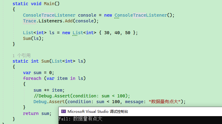 Debug.Assert(condition: sum < 100, message: "数据量有点大");